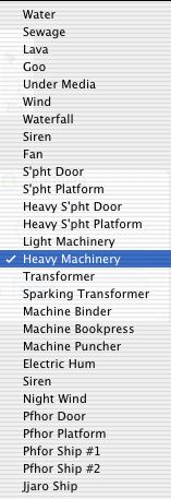 Selecting "View Sound" currently leads to an inactive submenu. Random Sounds have to be defined through the Configuration Editor by selecting the Random Sounds from the drop-down menu and adding a new sound to the list. A parameter box opens enabling you to select the sound via a drop-down menu and set phase, direction (0-512°), volume, period and pitch. The combination can then be assigned a name and the this is automatically stored in the Configuration Editor. The parameter box is similar to that found in Forge with the exception the sound value scale being 0-32767 and the direction controls being numerical rather than manual.