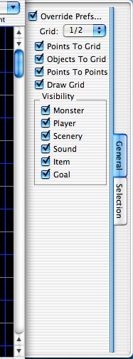 This is basically an extended version of that found in Forge. While the Polygon tool has gone, Dropper and Paintbrush tools have been added and the Object tool split into six separate tools for Aliens, Players, etc. The Dropper is similar to that seen in Forge's Visual Mode, identifying the particular properties of a line or polygon and setting them as new defaults. The Paintbrush will apply the collective properties of the defaults (chosen with the Dropper) to a selected line, polygon or object.