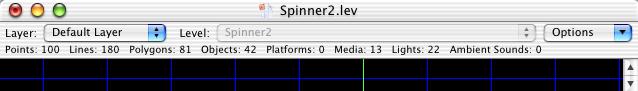 The exact appearance of the map depends on the colors chosen in General Prefs. The information bar has a drop-down menu for Layers & Options as well Levels for imported map files; it also keeps a running record of the total number of various details incorporated in the map being constructed. Aleph One is not constrained to a maximum of 256 polygons and Pfhorge can handle this.