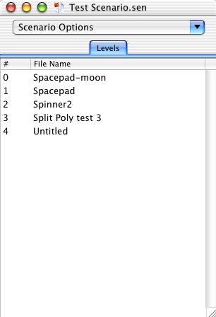 If there are files within the folder when the scenario file is created these levels initially will be collated alphabetically; the order can be altered by dragging & dropping and saved. As new levels are created through the scenario file you can determine their order. Levels in imported maps will be loaded in the order they existed in the map. As is explained in Terminals the PICT files you need for your terminals should be given their resource numbers for names.