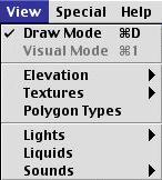 Polygon properties can be modified in two ways. The View Menu almost duplicates that of Forge's, the differences being the Polygon Types & Textures that are now handled by Basic & Texture Inspectors respectively (Tools menu).