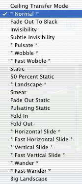 The Inspector offers a series of choices. Through two drop-down menus texture sets can be independently selected for floor and ceiling while two visual menus determine the texture chosen for each. The presentation of the textures are determined through two more drop-down menus, those entries with asterisks being those currently available. The "Offset" boxes enable the manual realignment of textures on the polygon surface.
